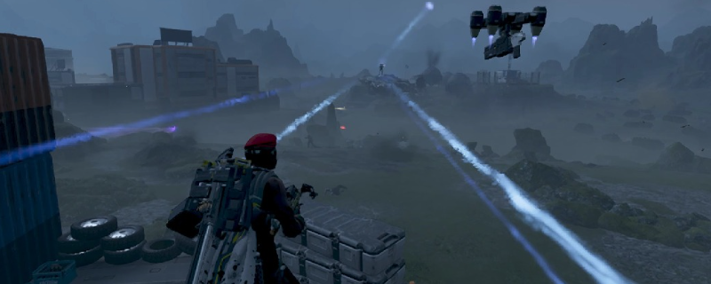 《绝地潜兵2》中遇到光能小飞机是比较麻烦的,经常出现小飞机来不及清理,结果招援军滚雪球的情况,而清理光能小飞机的方法有很多,首先,机炮打探机不用怎么瞄,用高射模式打周围的建筑,破片会收了它的。