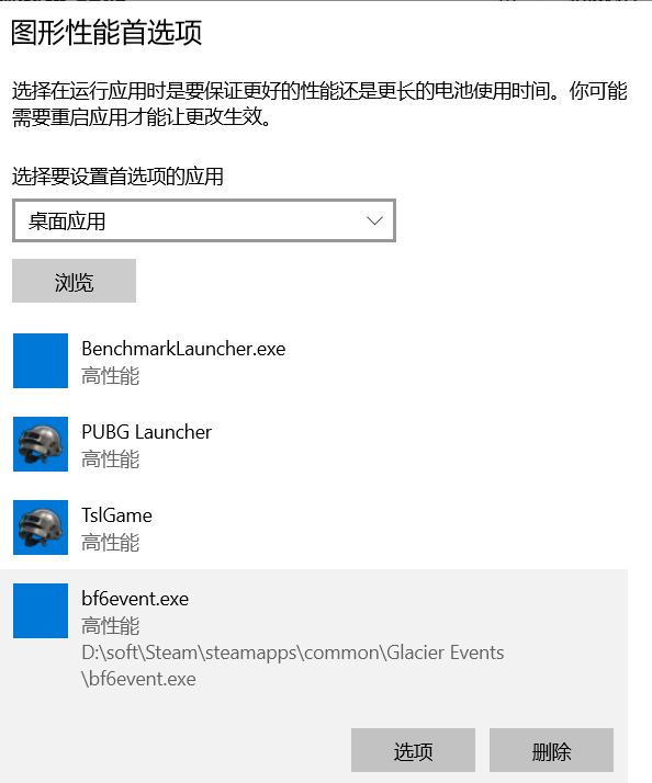 打开Windows设置的图形设置-图形性能首选项,在其中添加战地6的可执行程序