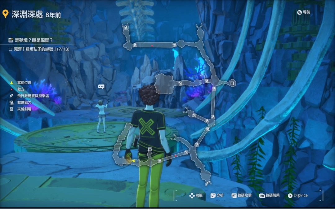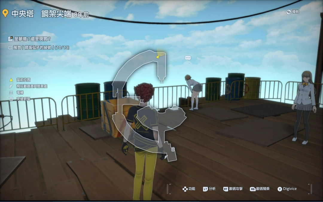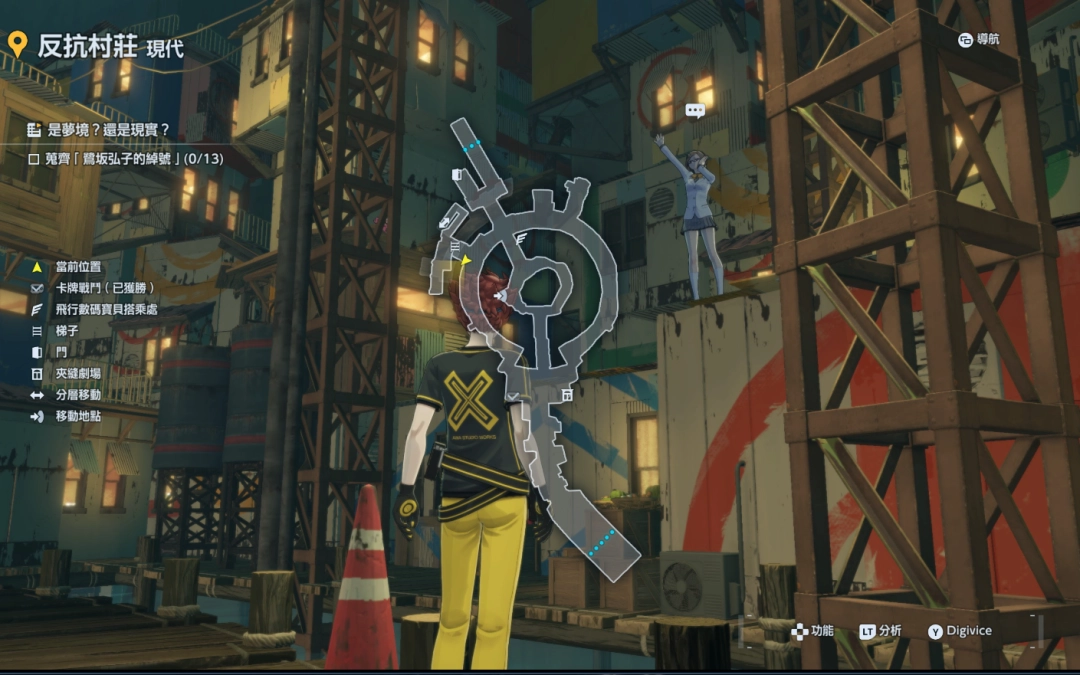 《数码宝贝物语:时空异客》中的特殊支线任务“是梦境?还是现实?”是游戏里比较独特的一个任务,玩家需要找到所有的十三个弘子的绰号才能完成任务,第一个弘子的绰号的位置就在现代反抗村庄的特殊位置。