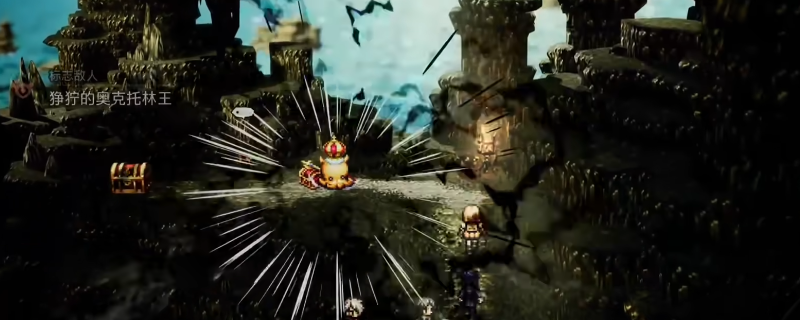 《歧路旅人0》中的刷钱和队伍搭配是游戏里非常重要的事情,尤其是在开局的时候,前期想要刷钱的话可以去大地图格兰波特的左上角,这边有个小岛,然后里面是有一个章鱼标志怪,这个套路就是把这个商人的收钱技能给泰里翁,泰里翁的被动可以双倍收钱。