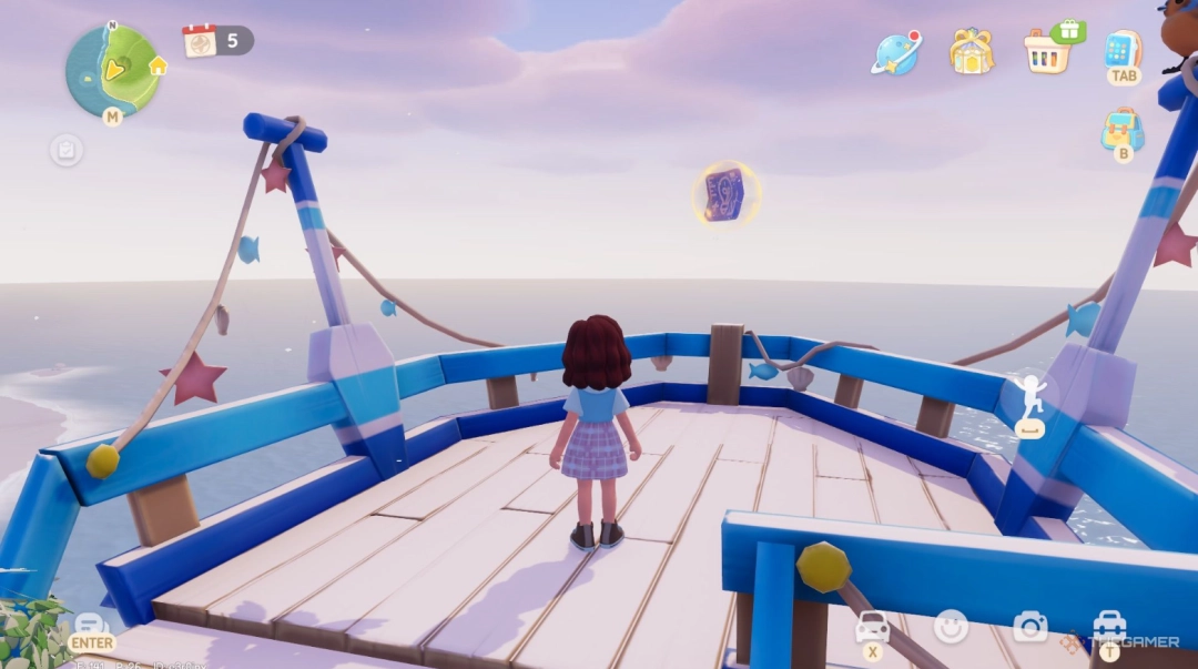 《心动小镇》中的海洋餐具是游戏里比较重要的一个特殊工具,而想要制造这个家具就需要先搞到配方,这个配方可以前往鲸鱼山,沿着海岸在一棵大树附近搜索。配方泡泡漂浮在俯瞰大海的观景台上。