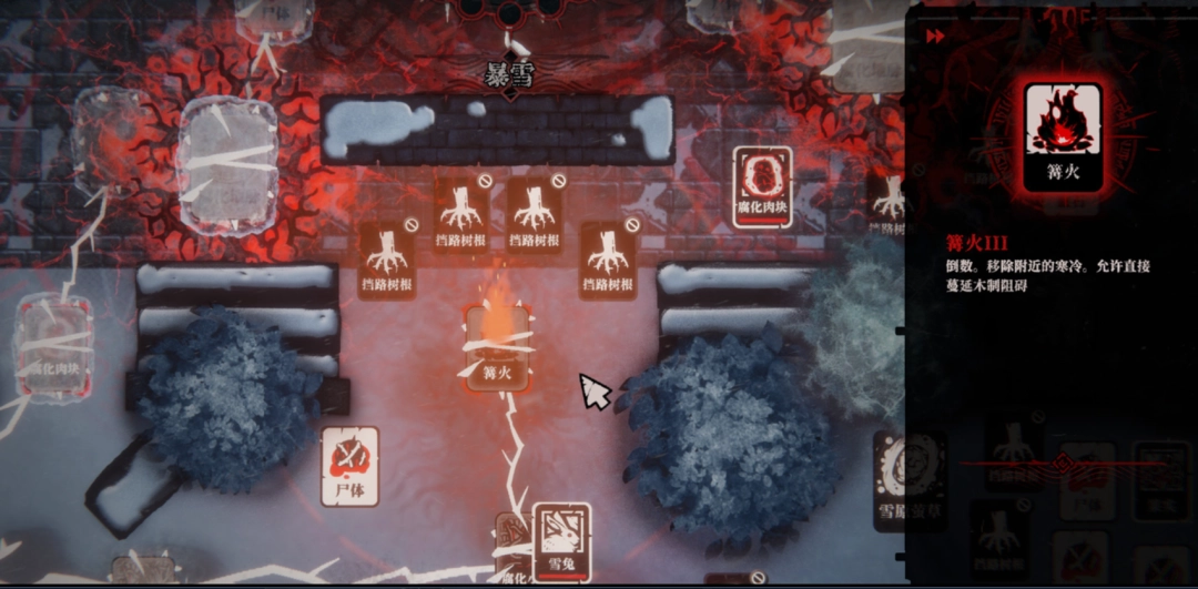 《腐根之里》中的篝火是游戏里非常重要的特殊设施,不过很多玩家都不太清楚篝火的具体作用是什么,其实篝火有两个用处,第一个是能防止范围内的卡牌冻结,第二个是能传递火种将挡路树根烧掉。
