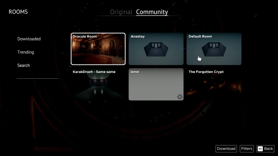 要解锁此成就,您需要完成社区创建的任意一间房间。您可从大厅中点击入口处出现的菜单进入“社区”版块。在此,您可以浏览并下载社区房间。一旦完成其中一间,该成就将在逃脱结束时解锁。如果您只想快速完成成就,可以下载并通关默认房间,这是一个专为此目的设计的非常简短且简单的社区地图。