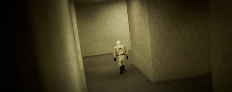 通过桥之后寻找这样有光柱射下来的地方,之后顺着这个方向走,通过一扇消毒门后即可过关。