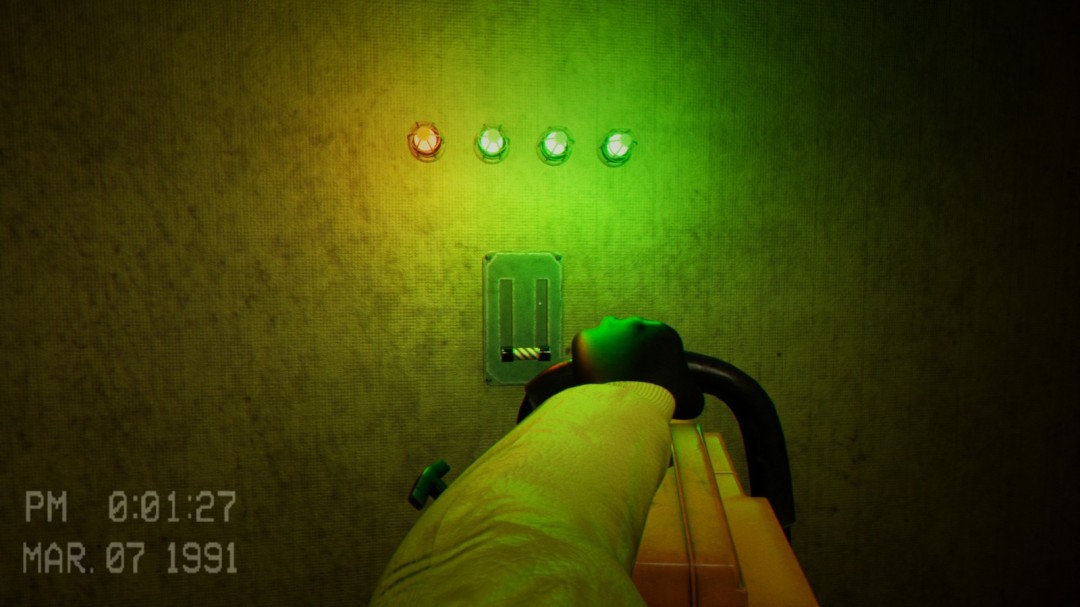 用电锯把木棍锯开,进入门里面找到这样的闸门,总共要找三个,第四个在出口处。