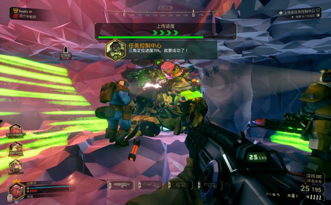 搜救任务在枪手没有出护盾回复器之前是几个任务模式里最难的,翻车概率最大。这个任务和其他的几个模式稍微有点不同,分为搜救矿骡和撤离守点两个阶段任务。难点就在于组装完迷你矿骡之后的3波守点,前两波守点要维修完空投下来的装置,把它修理完防守就开始了,形成一个球体的穿透范围,在范围内才会增加进度(只有4个人全在范围内才是最大上传速度)上传中途圈内人全部死亡或者没人上传进度就会逐渐下降最终直接任务失败。