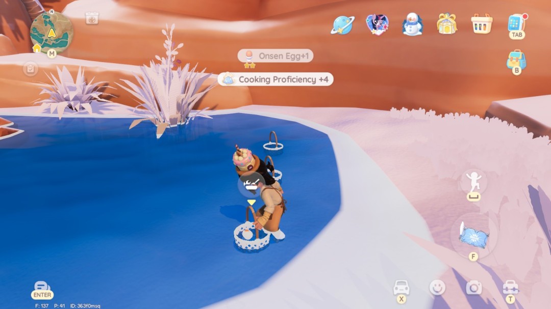 与这六个篮子中的任意一个互动,即可开始烹制温泉蛋,并等待计时器倒计时结束。