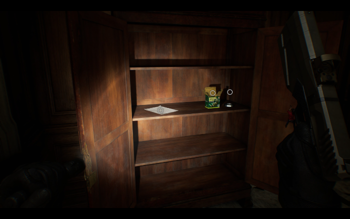 从阁楼下到二楼,出门左拐撬开柜子,查看洗碗工的字条。