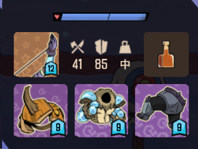 可选:猎人续航(受伤后回血),乒(上一次轻攻击,下一次重攻击伤害翻倍),发条玩具(第五次攻击双倍伤害),心跳玩家(增伤也增受伤),静电震荡(重攻击带电),惊若脱兔(击杀敌人加移速)