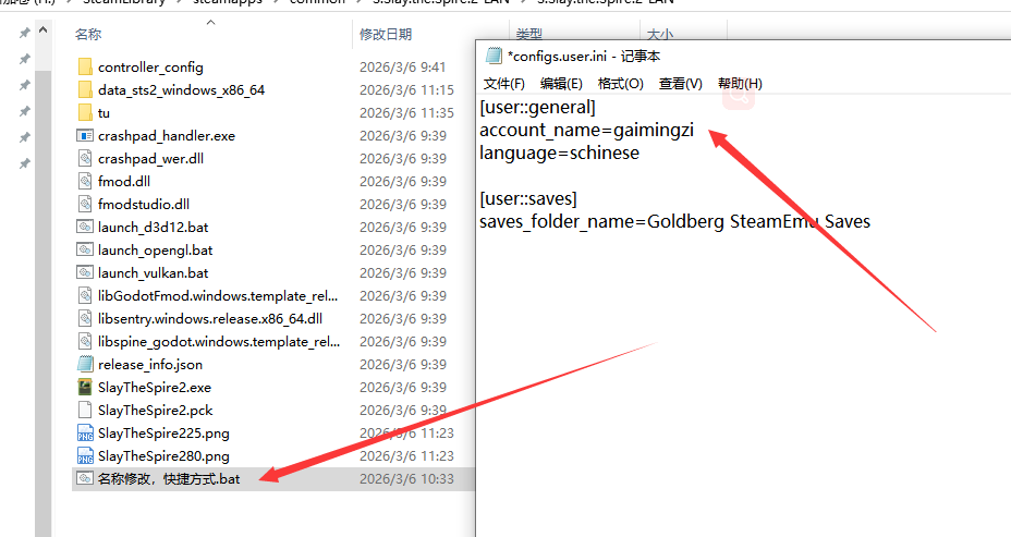 双击打开游戏目录下的“名称修改,快捷方式.bat”,找到“account_name=gaimingzi”,把“gaimingzi”改成自己想要的名字,保存。